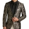 Stand out at your next formal event with this handsome evening-wear jacket by After Hours. This fine jacket features a richly detailed jacquard pattern with satin details throughout.