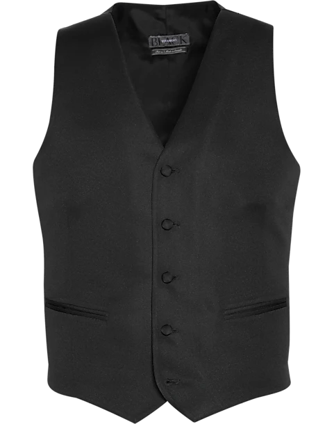 Complete your formalwear look with this fine tuxedo vest by Vera Wang. This elegant vest features welt pockets, a six-button closure, and a full satin back with adjustable belt.
