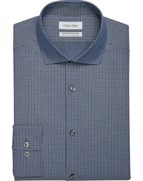 Calvin Klein Infinite Wrinkle Free Slim Fit Stretch Collar Dress Shirt, Midnight Blue Dash