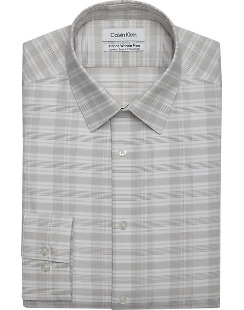 Calvin Klein Infinite Wrinkle Free Slim Fit Stretch Collar Dress Shirt, Taupe Plaid