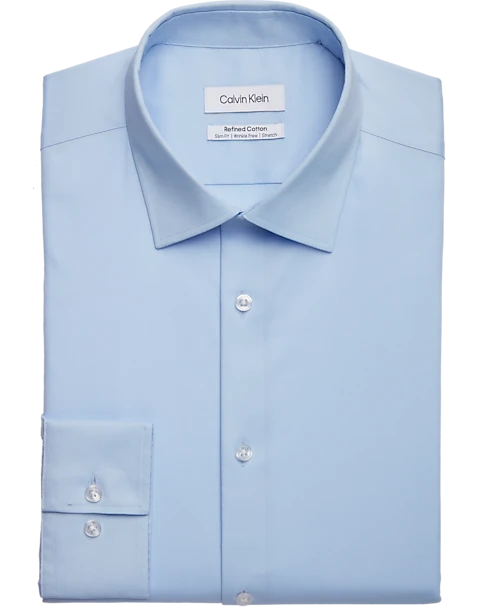 Calvin Klein Refined Cotton Stretch Supima Slim Fit Dress Shirt, Light Blue