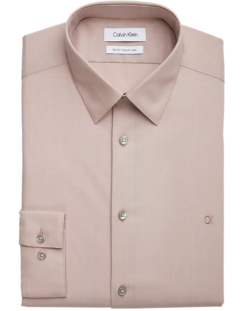 Calvin Klein Slim Fit Embroidered Logo Dress Shirt, Taupe