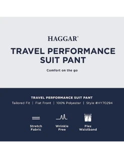 - 100% polyester|Built-in stretch for comfort|Two button|Notch lapel|Side vents|Classic Fit|Coordinating pieces sold separately|Haggar Travel Performance|