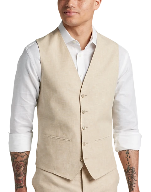 JOE Joseph Abboud Slim Fit Linen Blend Suit Separates Vest, Tan Chambray