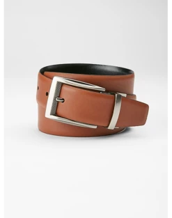 Offering two looks in one design, this reversible belt from Joseph Abboud doubles your options. Styled with feather edging and a silver-tone buckle, it mixes and matches effortlessly with a variety of looks.