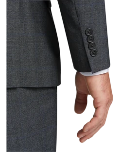 Look your best in comfort with this fine Lauren By Ralph Lauren Suit featuring a dark gray plaid pattern and fabric woven with a touch of stretch.