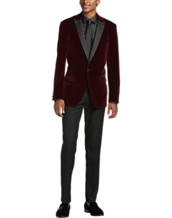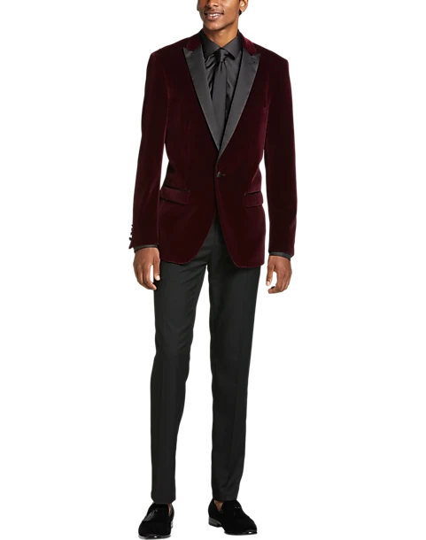 Make an entrance with this jacket from Paisley & Gray. Styled with a velvet peak lapel and a modern, Slim Fit, it’s perfect for holiday parties and other formal occasions.