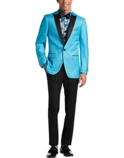 Make a bold sophisticated statement with this finely crafted dinner jacket by Paisley & Gray. Featuring a vibrant hue paired with a black satin peak lapel it is tailored with a streamlined Slim Fit to offer a sleek modern look for your next special occasion.