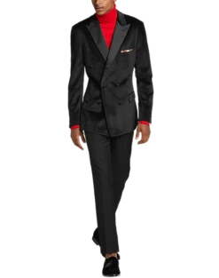 Sharp, stylish and guaranteed to turn heads, this double-breasted jacket from Paisley & Gray is a must for special occasions. It features a satin peak lapel, handkerchief pocket and a modern Slim Fit.