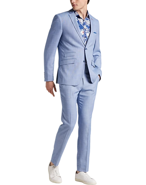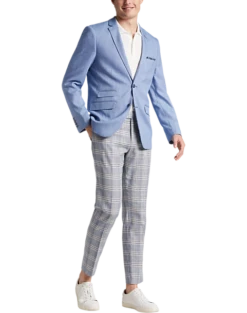 Step things up in a handsome coat and pant that features a plaid pattern in tan and gray. It’s part of suit separates which lets you choose your coat, pants and vest sizes separately for your best fit ever.
