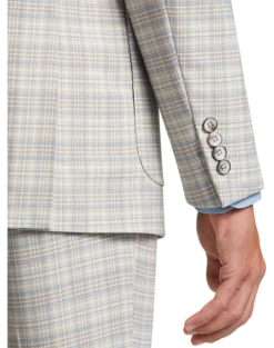 Paisley & Gray Slim Fit Suit Separates Coat, Baby Blue & Tan Plaid