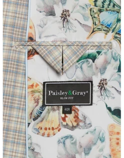 - Polyester Blend|Two button|Notch lapel|Side vents|Patch pockets|Slim Fit|Coordinating pieces sold separately|Matching Pant: TMW_3XJU_3XJV_96|Paisley & Gray|