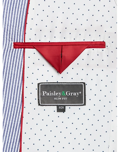 Paisley & Gray Slim Fit Suit Separates Coat, Blue & White Seersucker
