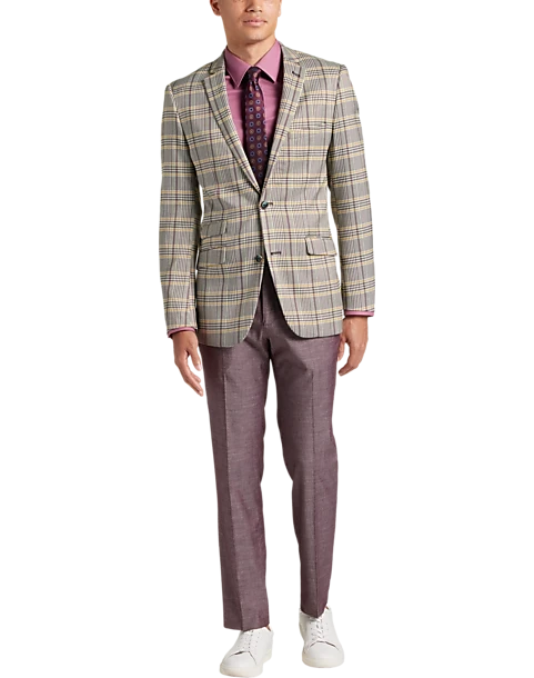 - 100% polyester|Two button|Notch lapel|Side vents|Coordinating pieces sold separately|Slim Fit|Paisley & Gray|