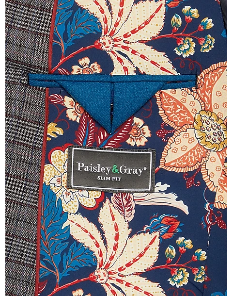 - Polyester blend|Notch lapel|Two-button closure|Flap pockets|Coordinating pieces sold separately|Slim Fit|Paisley & Gray|