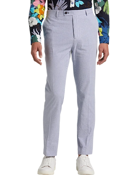 Paisley & Gray Slim Fit Suit Separates Pants, Blue & White Seersucker