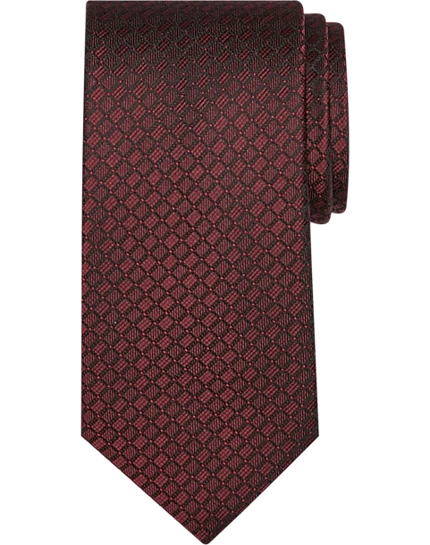 Pronto Uomo Narrow Tie, Burgundy Tonal Grid